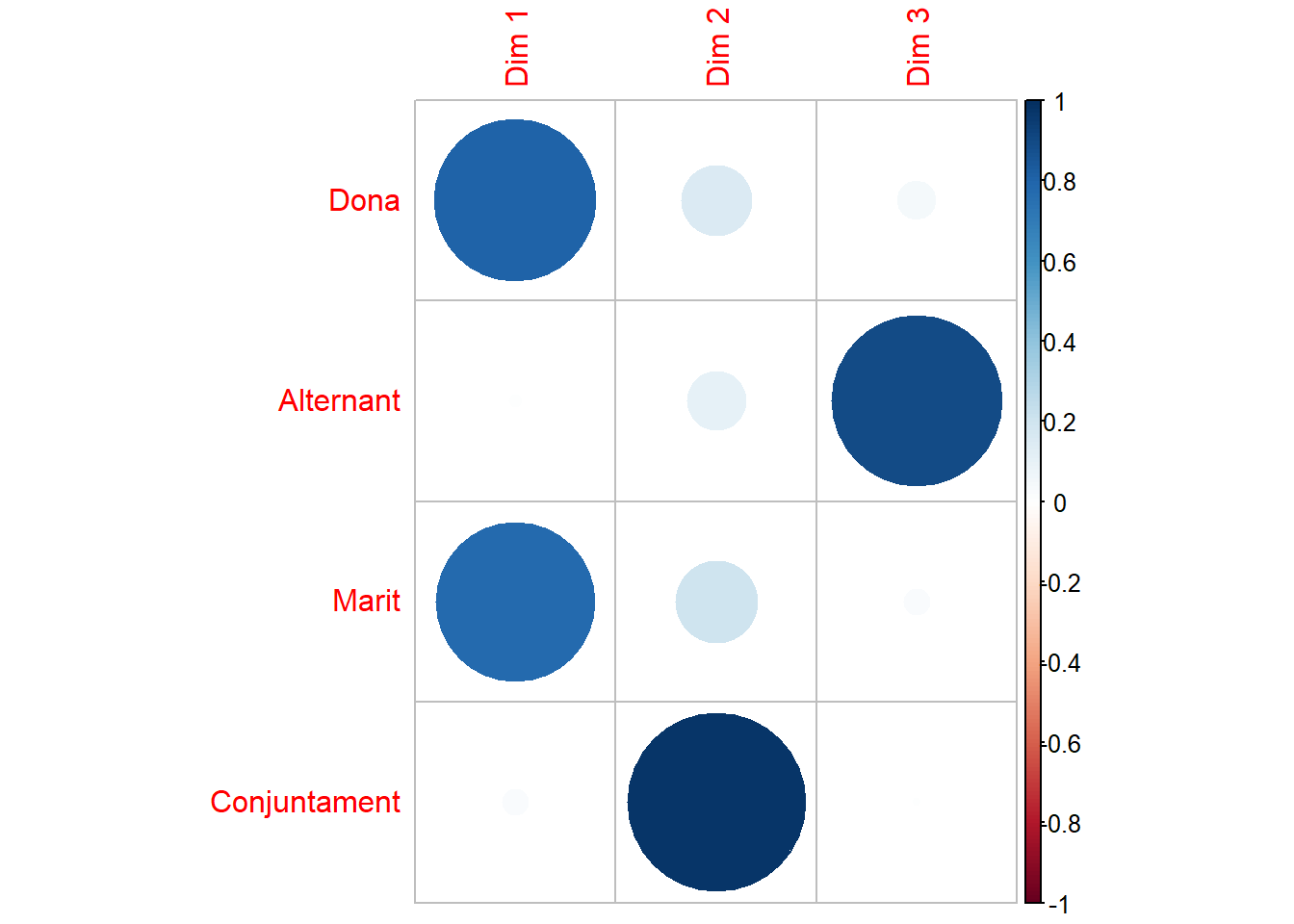 Per tal de poder descriure les dimensions, podem realitzar un gràfic de correlacions.