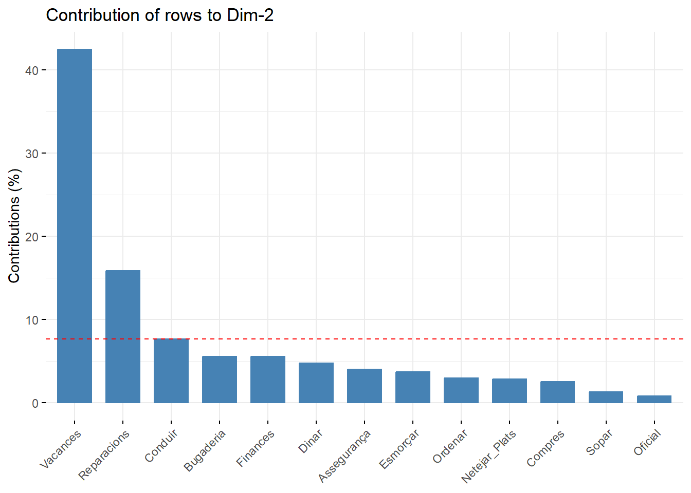 fviz_contrib(housetasks_CA, choice = "row" ,axes = 2)