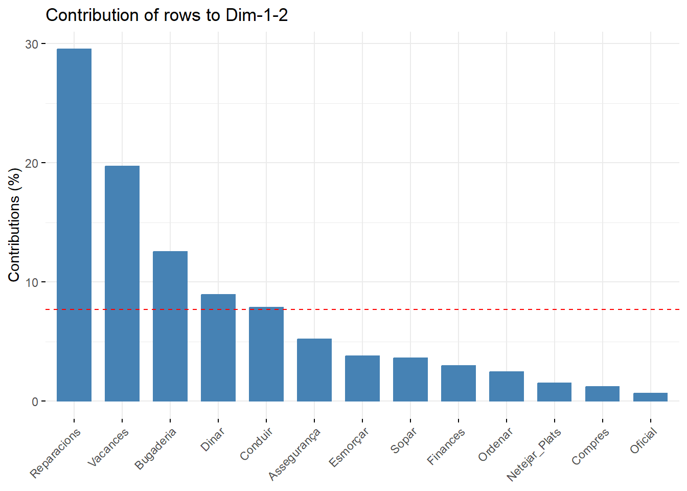 fviz_contrib(housetasks_CA, choice = "row" ,axes = 1:2)
