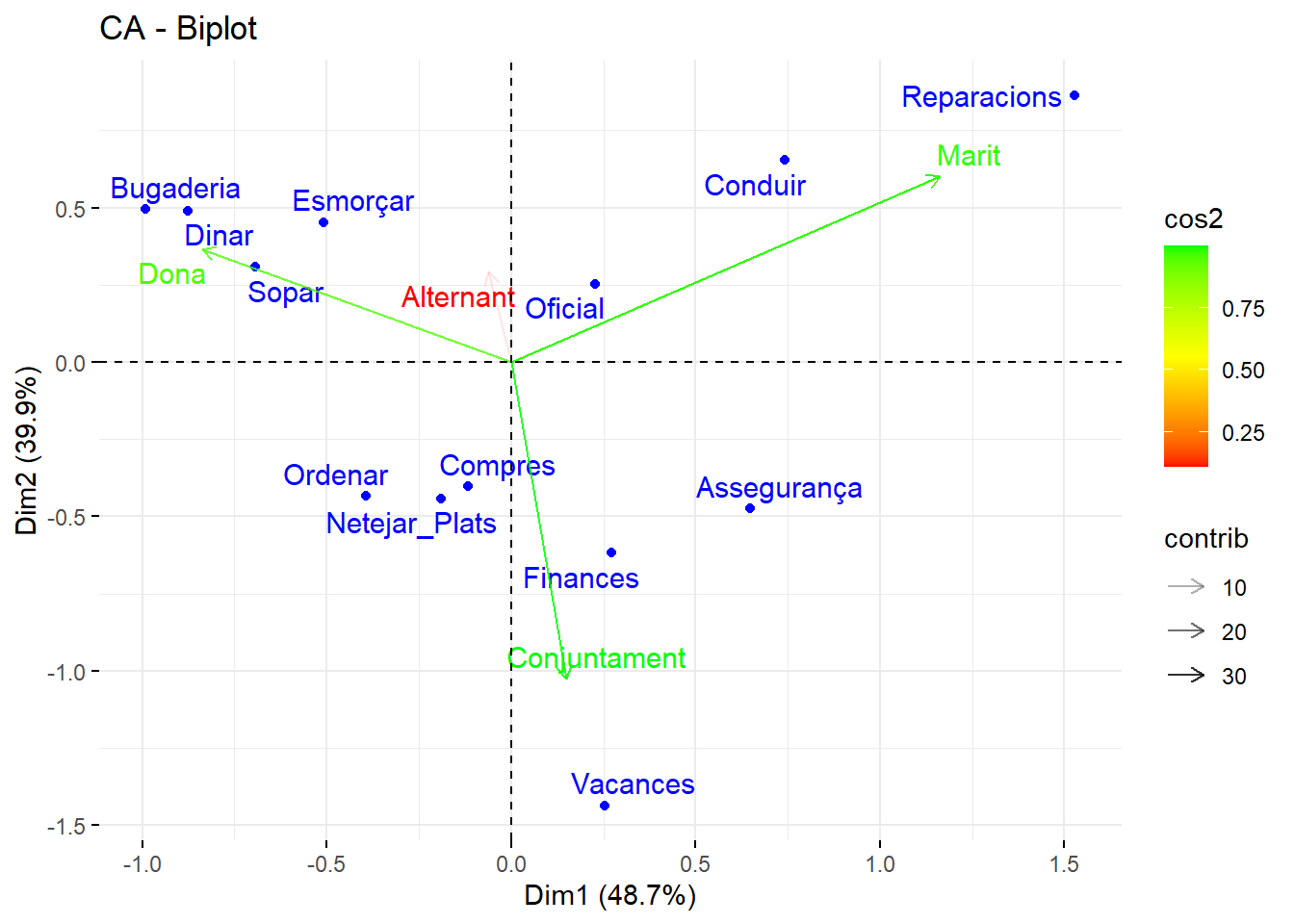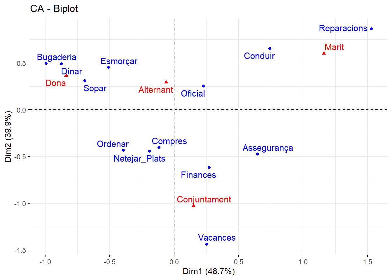 print(housetasks_CA)**Results of the Correspondence Analysis (CA)**