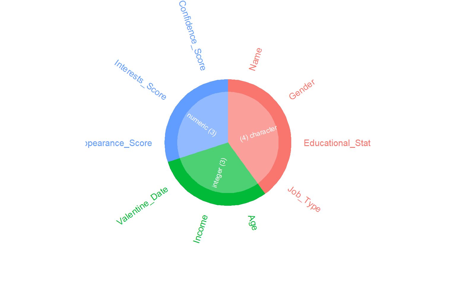 # Representación de la estructura del datasetplot_str(dades)# Resumen introductorio del conjunto de datosintroduce(dades)