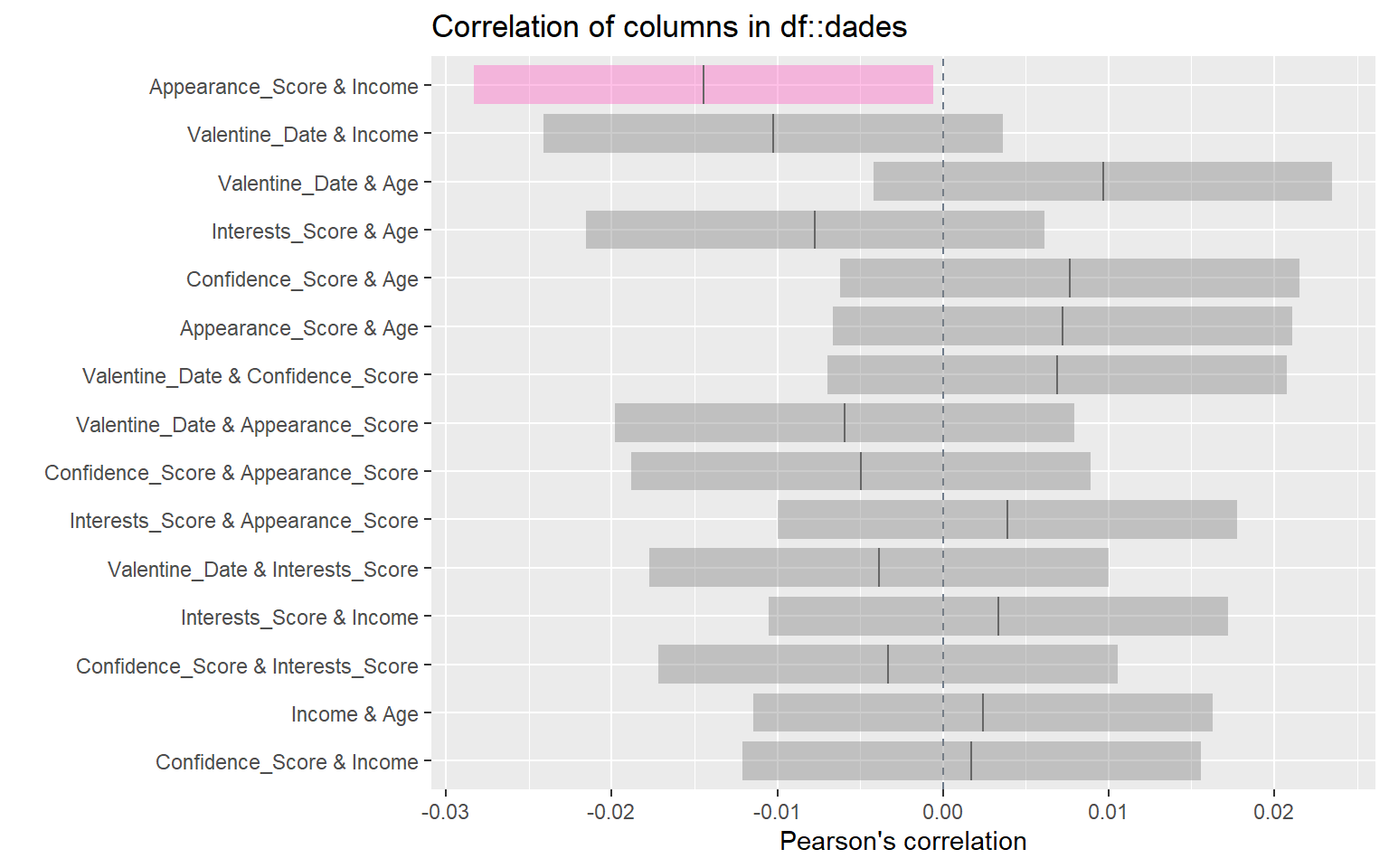 # Gráfico resumido de correlaciones entre variables numéricasinspect_cor(dades) %>%show_plot()