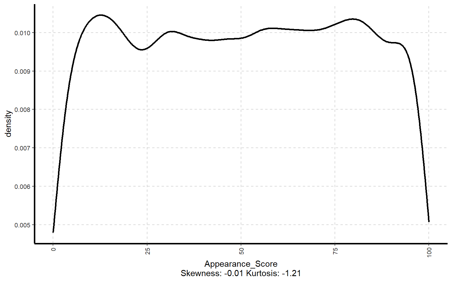 # Estadísticos numéricos segmentados por la categoría GenderExpNumStat( dades,by ="GA",gp ="Gender",Qnt =seq(0, 1, 0.1),MesofShape =2,Outlier =TRUE,round =2)