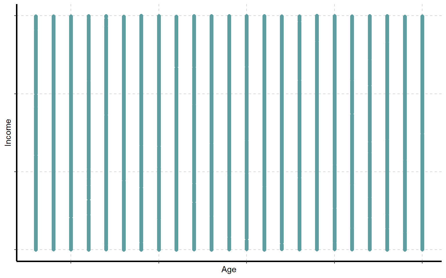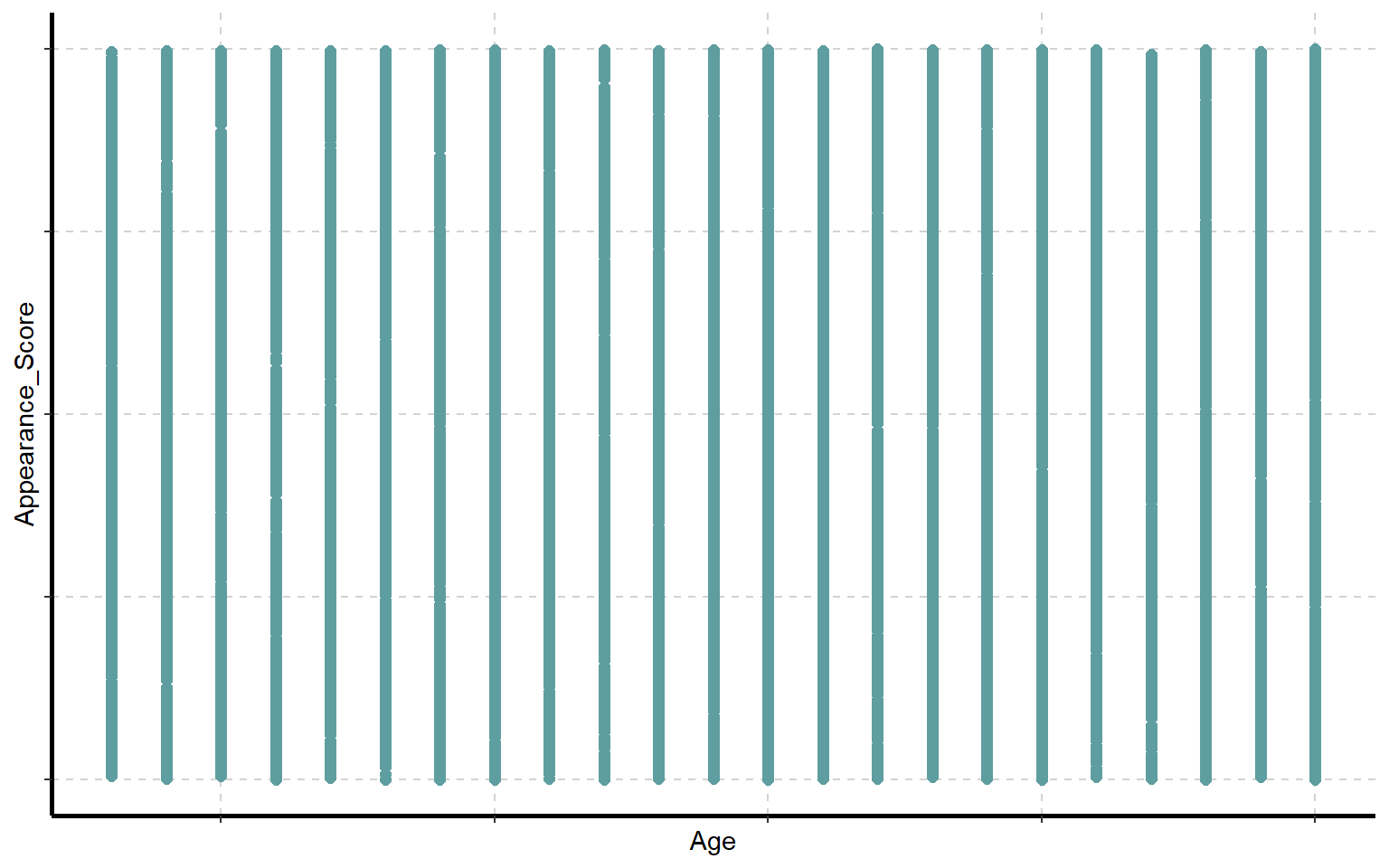 # Gráficos de dispersión utilizando Age como variable objetivoExpNumViz(dades, target ="Age", type =3, nlim =25)