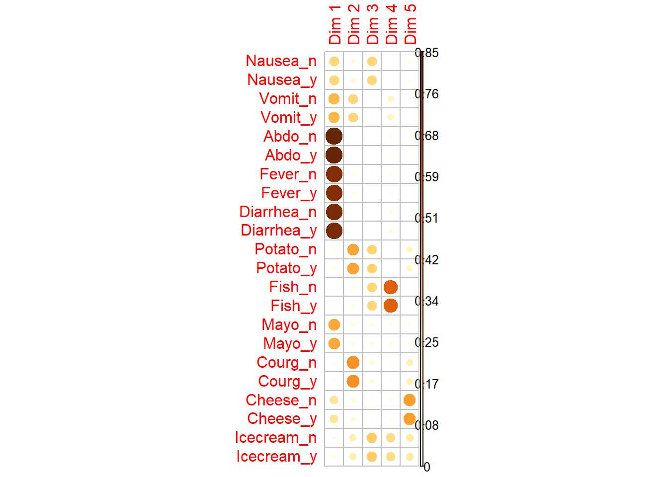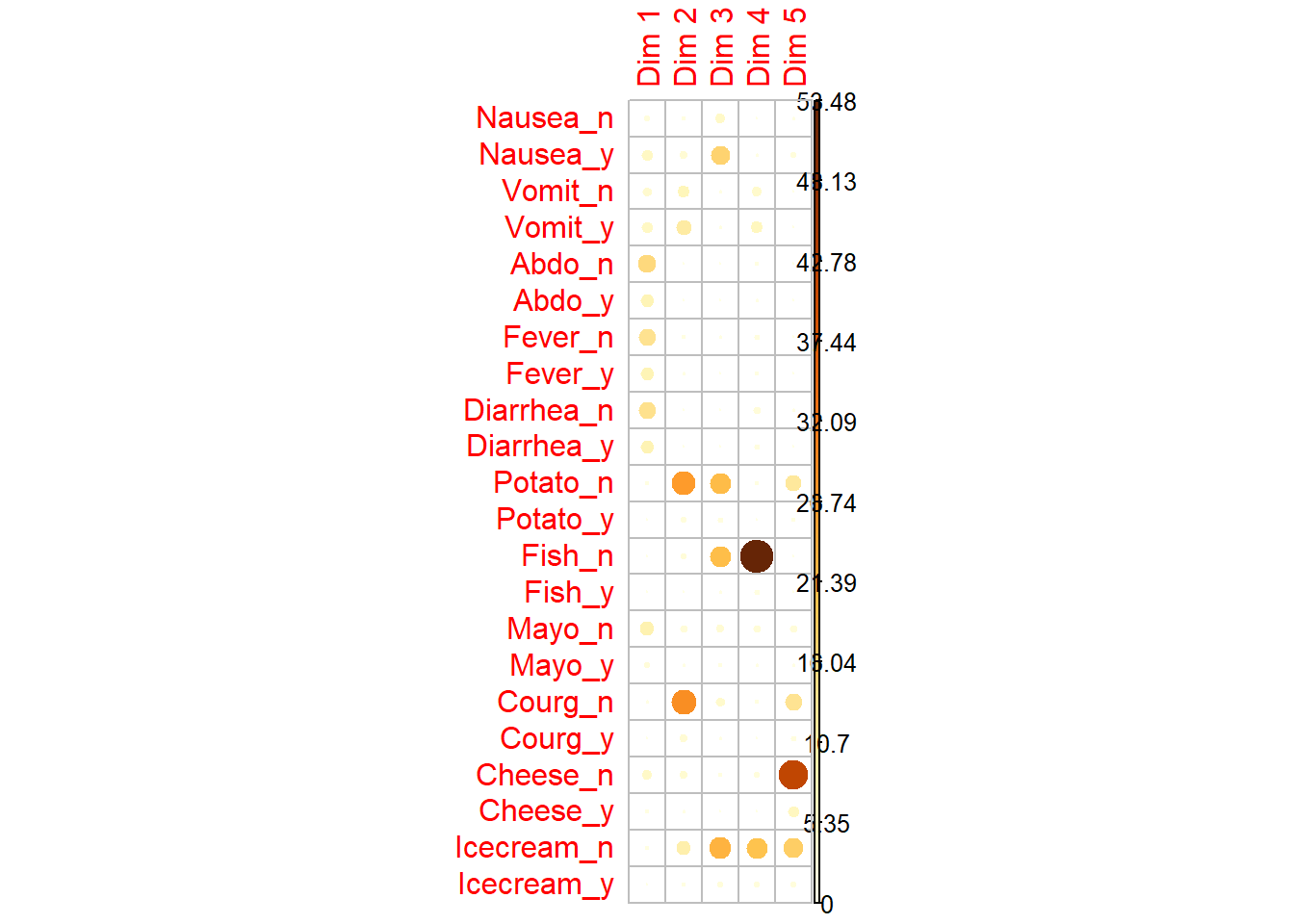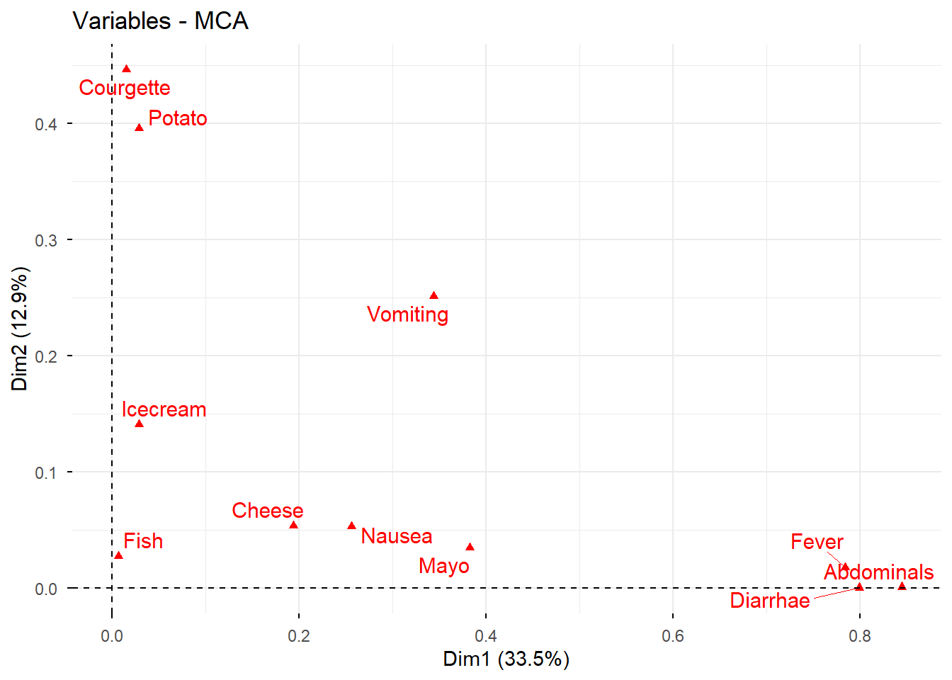 Abdo_n:18 Fever_n:20 Diarrhea_n:20 Potato_n: 3 Fish_n: 1 Mayo_n:10