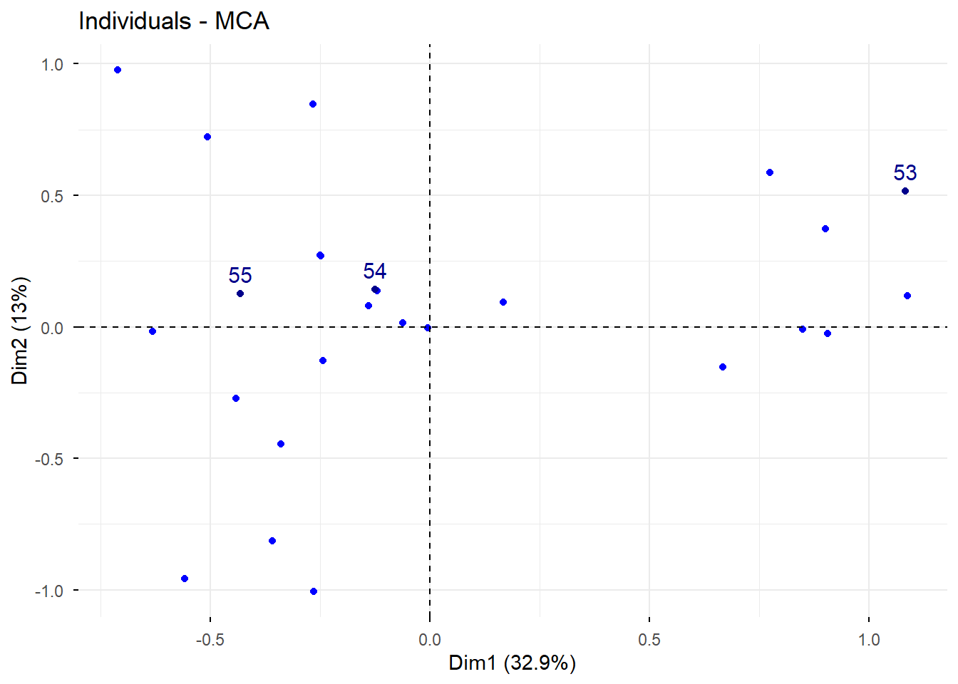 # Representación de individuos suplementariosfviz_mca_ind( res.mca,label ="ind.sup",ggtheme =theme_minimal())