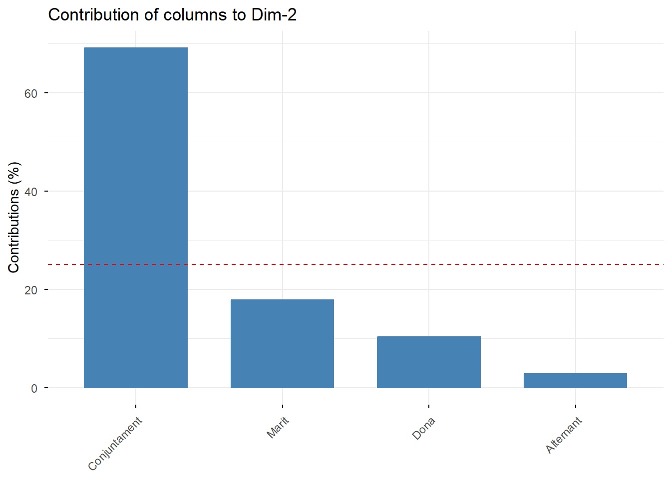 A continuació anem a veure la contribució de cada columna a cada dimensió: