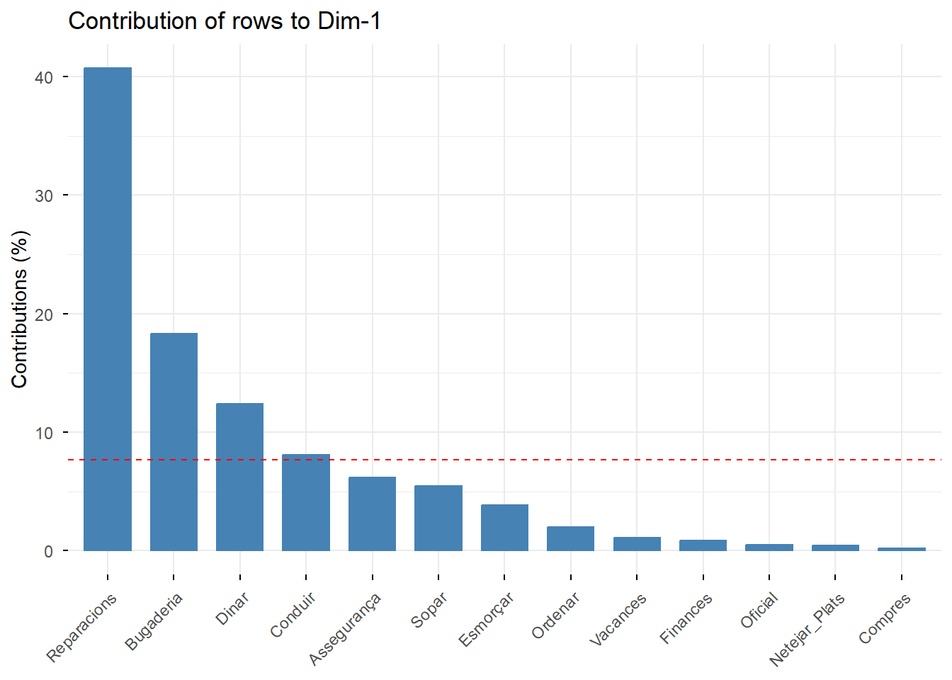 fviz_contrib(housetasks_CA, choice = "row" ,axes = 1)