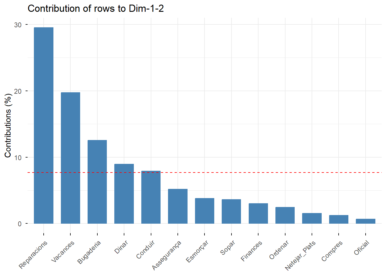 fviz_contrib(housetasks_CA, choice = "row" ,axes = 1:2)
