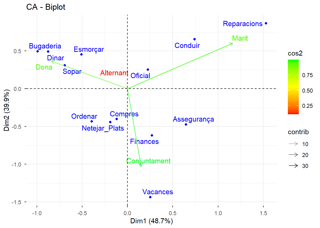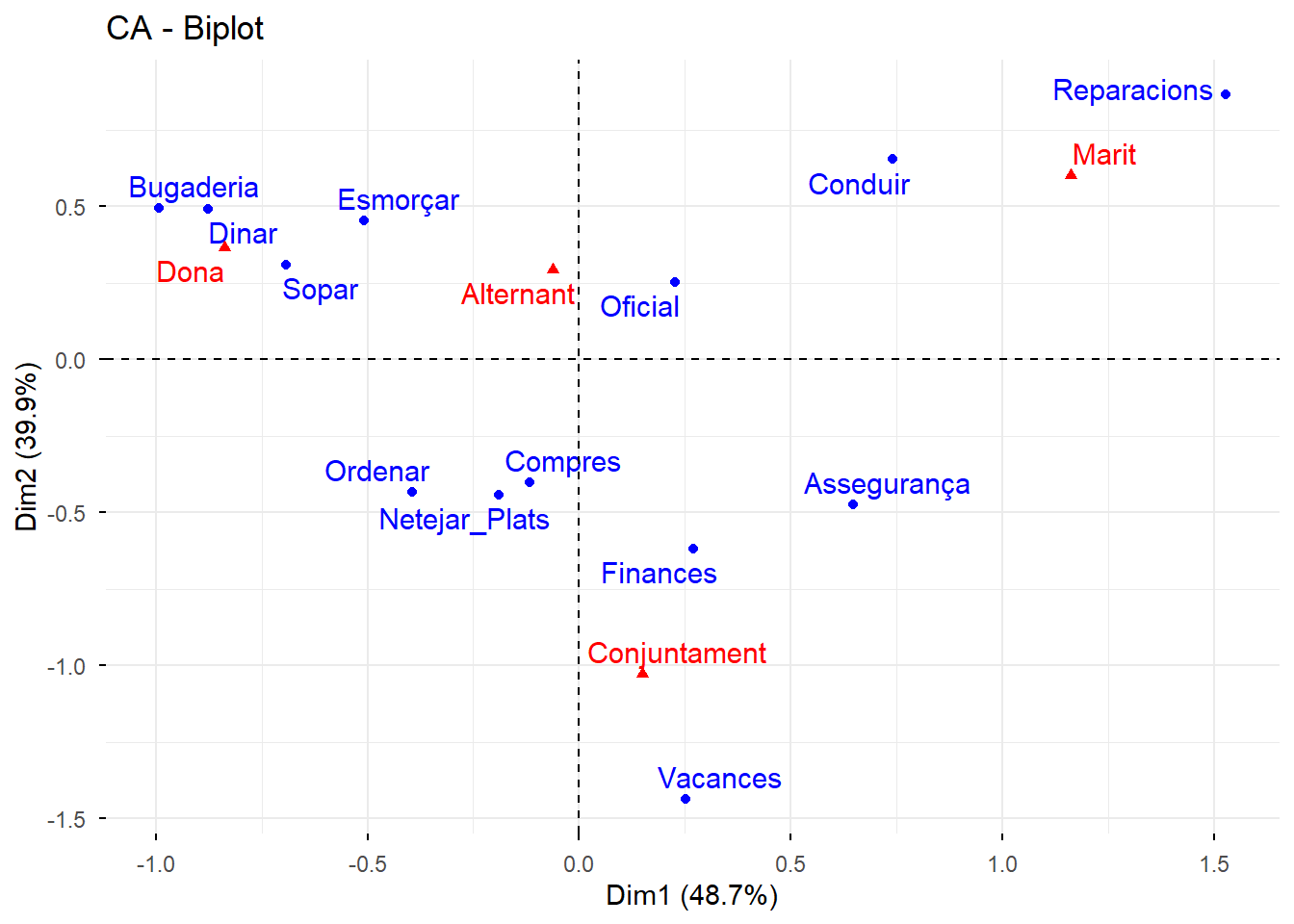 print(housetasks_CA)**Results of the Correspondence Analysis (CA)**