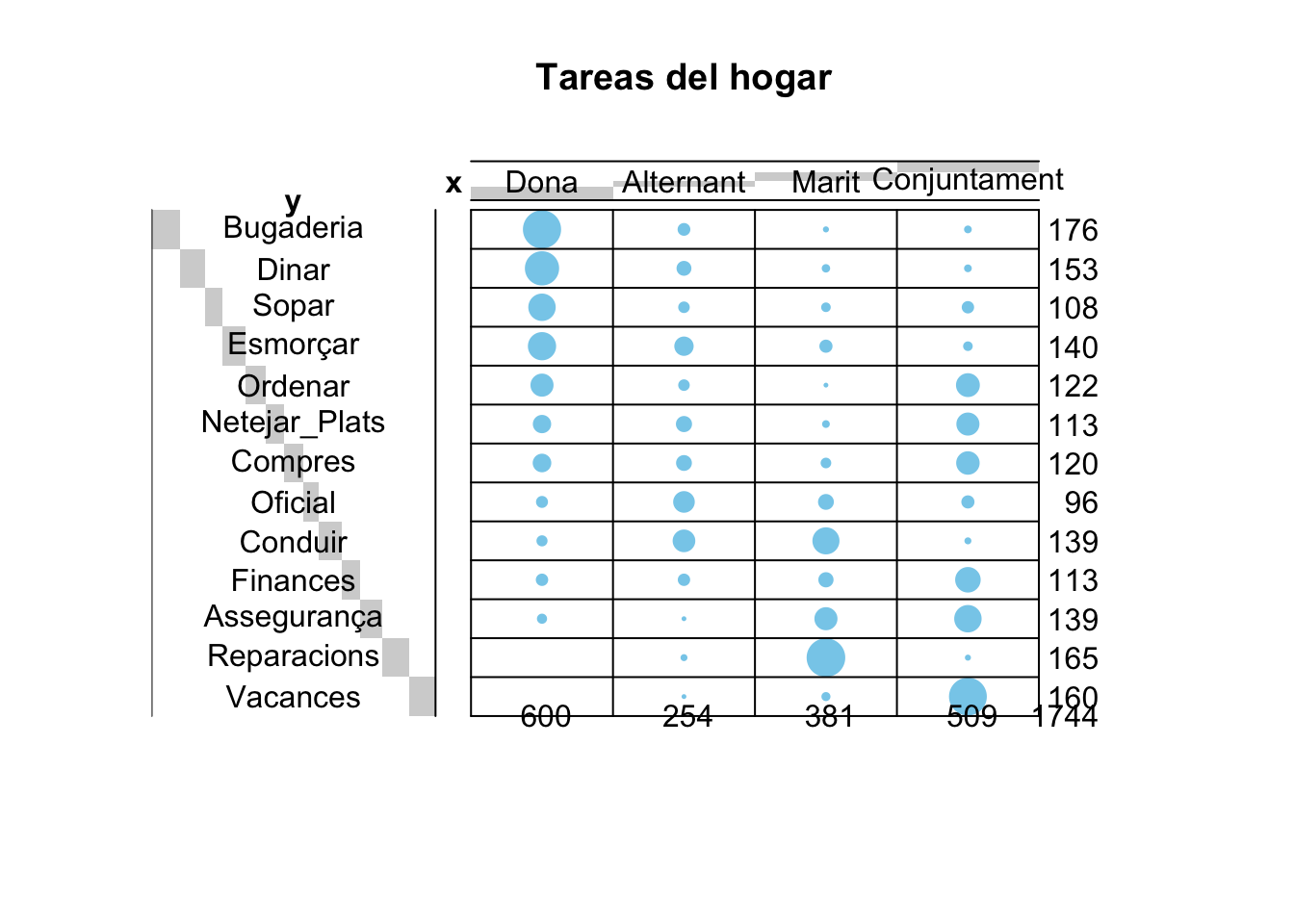 colnames(housetasks) <- c("Dona", "Alternant", "Marit", "Conjuntament")