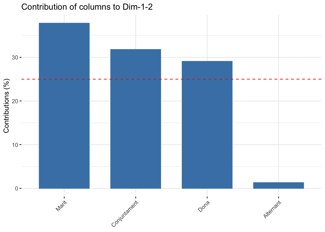 fviz_contrib(housetasks_CA, choice = "col" ,axes = 1:2)