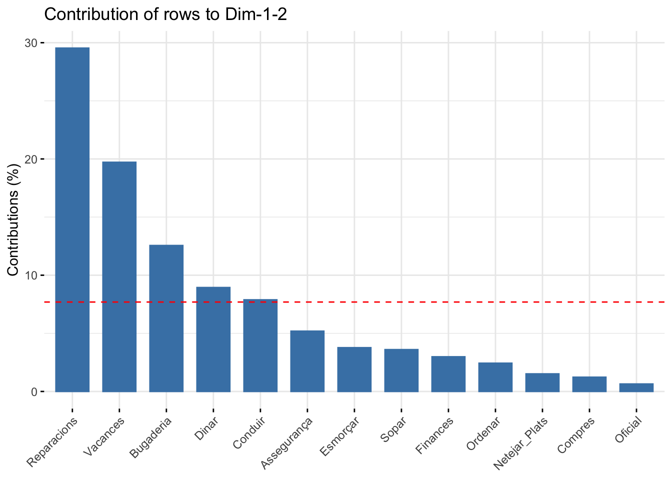 fviz_contrib(housetasks_CA, choice = "row" ,axes = 1:2)