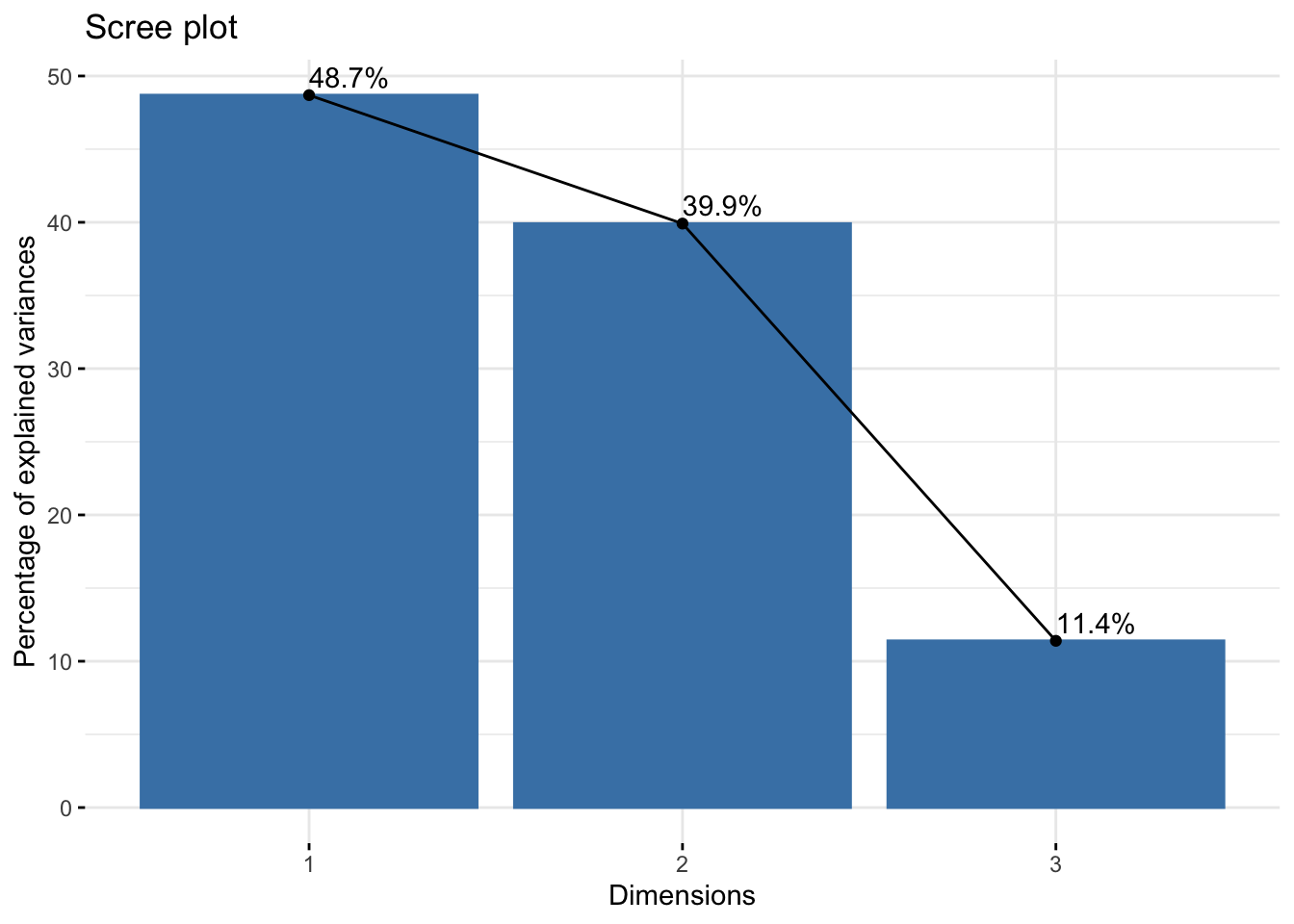 fviz_screeplot(housetasks_CA, addlabel=T)