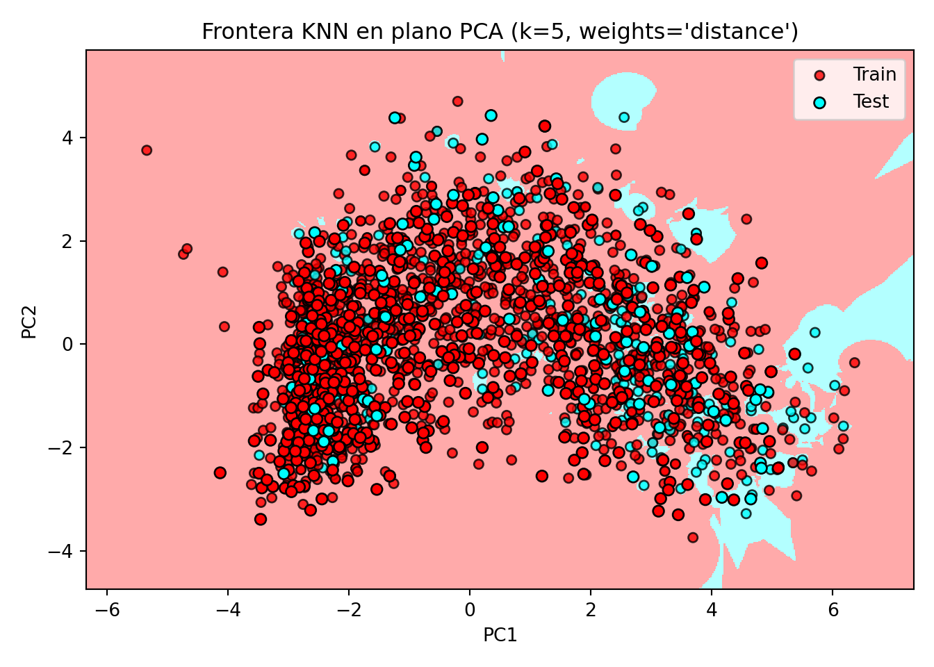 # 1) Preprocesado: centrar, escalar, PCA=2 (ajustado en train)