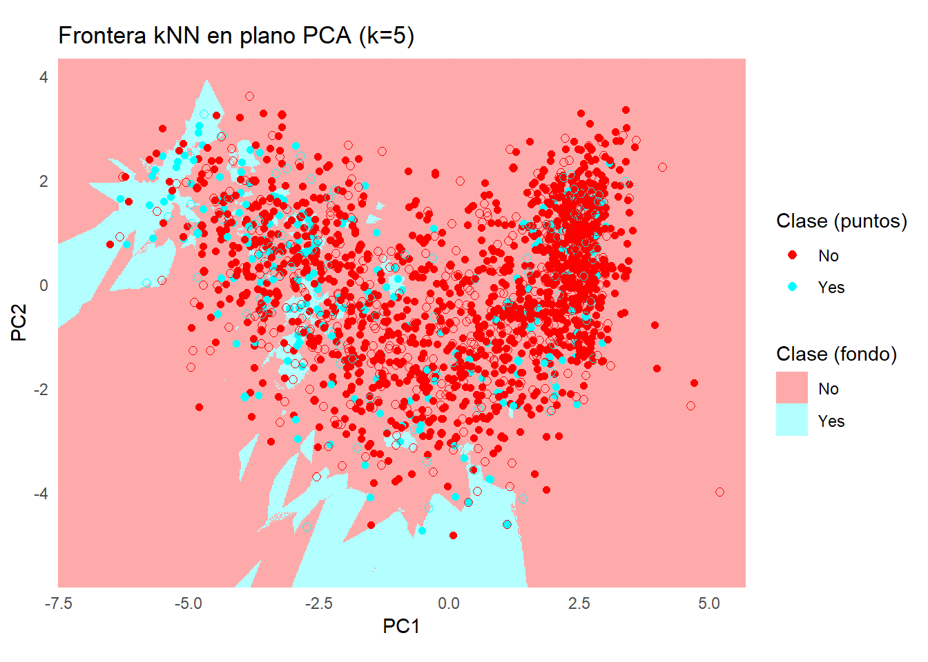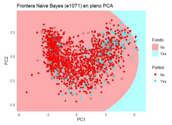 labs(title = "Frontera Naive Bayes (e1071) en plano PCA", x = "PC1", y = "PC2") +