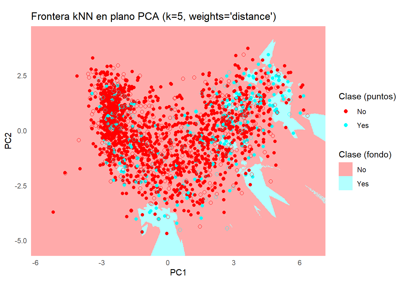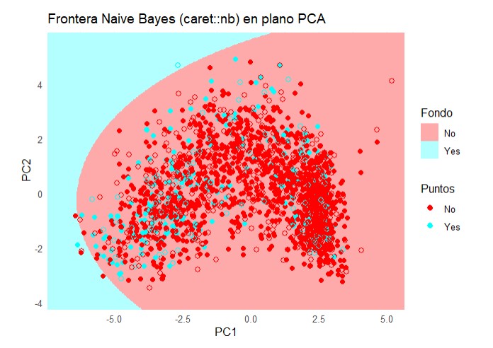 labs(title = "Frontera Naive Bayes (caret::nb) en plano PCA",