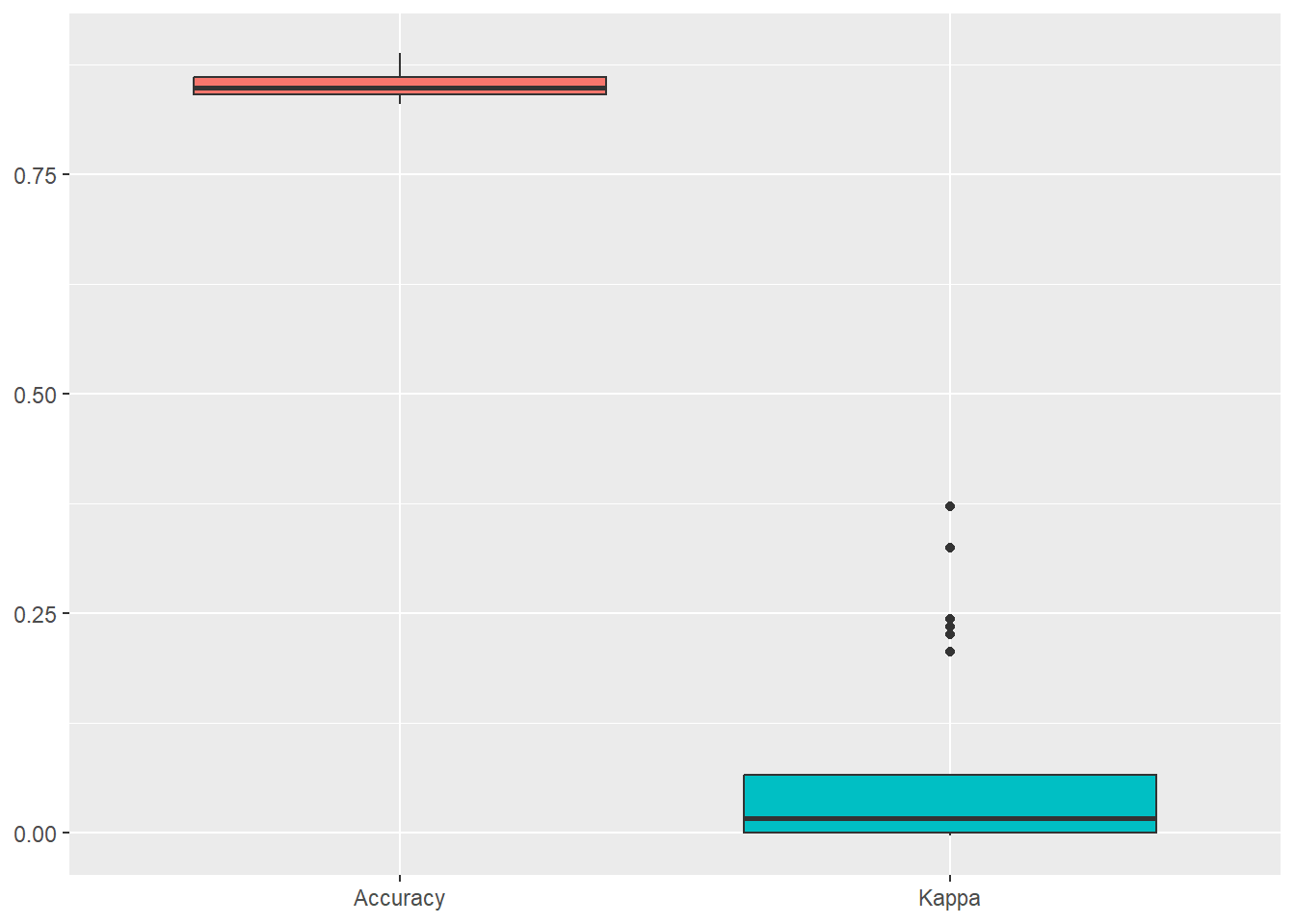 ggplot(melt(naive_bayes_via_caret2$resample[,-4]), aes(x = variable, y = value, fill=variable)) +