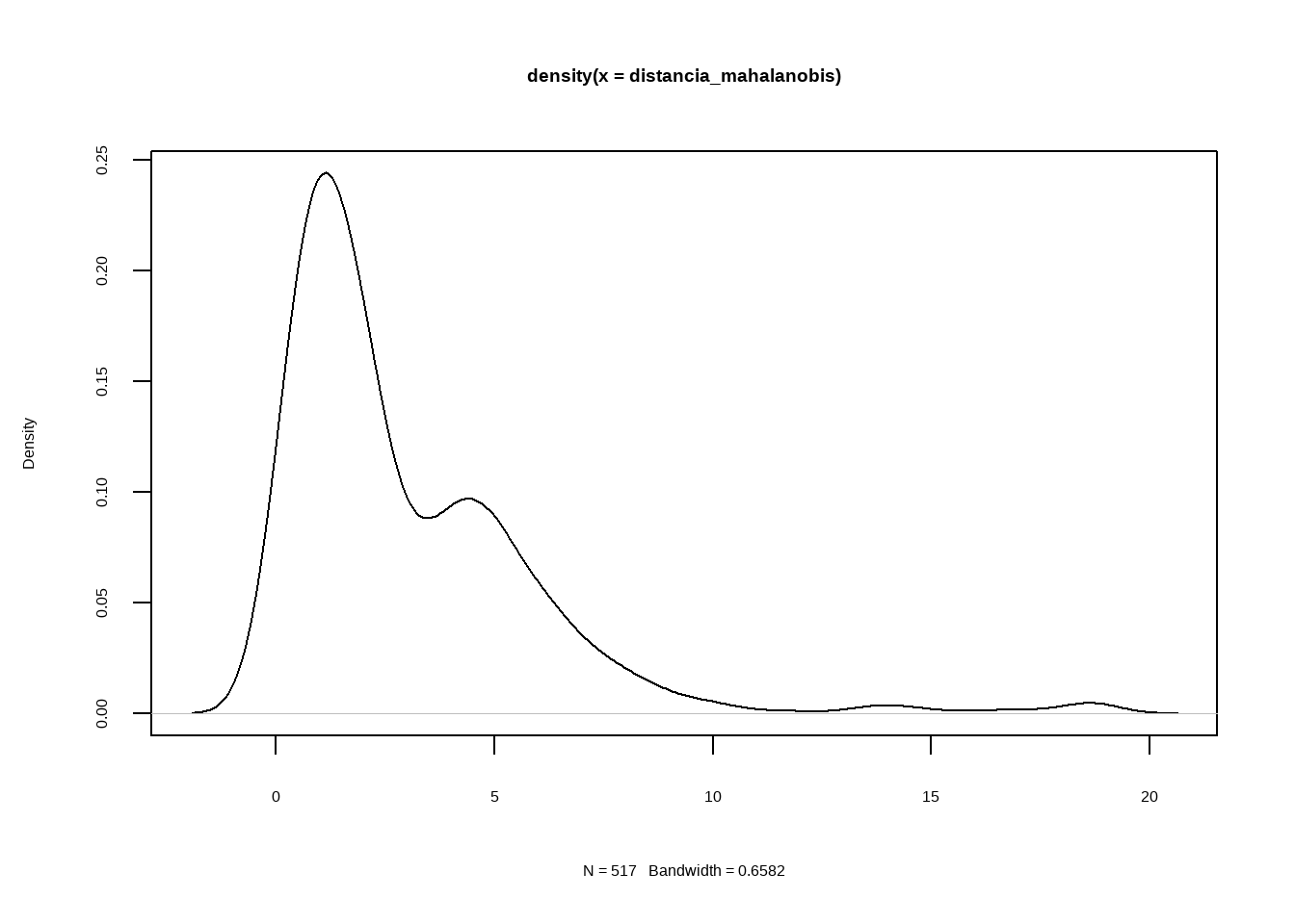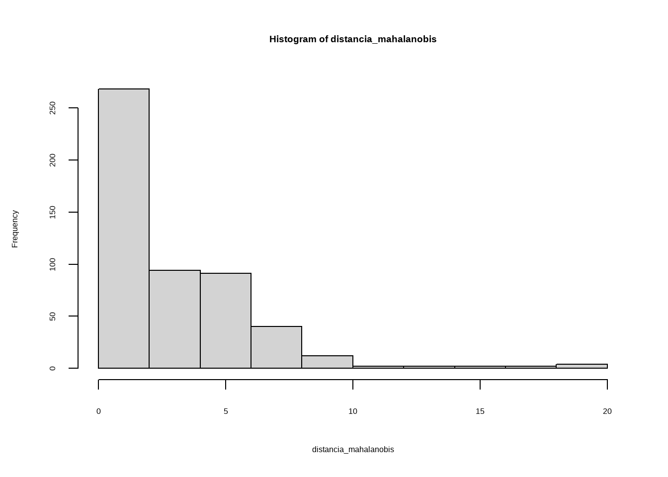 La distancia promedio en el grupo de las anomalías (1) es claramente inferior. Sin embargo, al existir solapamiento, si se clasifican las n observaciones con menor distancia como anomalías, se incurriría en errores de falsos positivos.