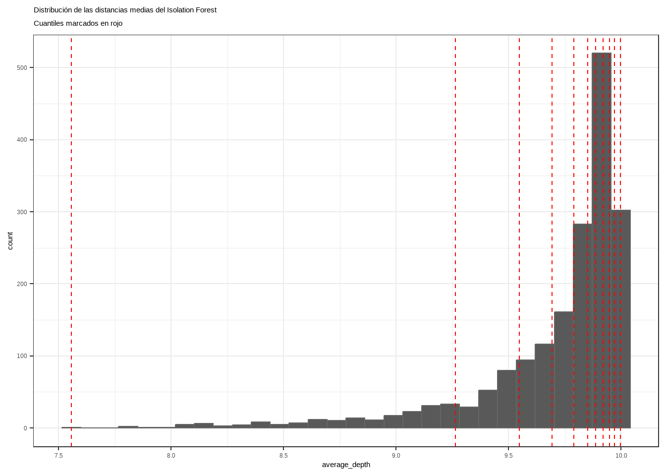 Una vez que la distancia de separación ha sido calculado, se puede emplear como criterio para identificar anomalías. Asumiendo que las observaciones con valores atípicos en una o más de sus variables se separan del resto con mayor facilidad, aquellas observaciones con menor distancia promedio deberían ser las más atípicas.