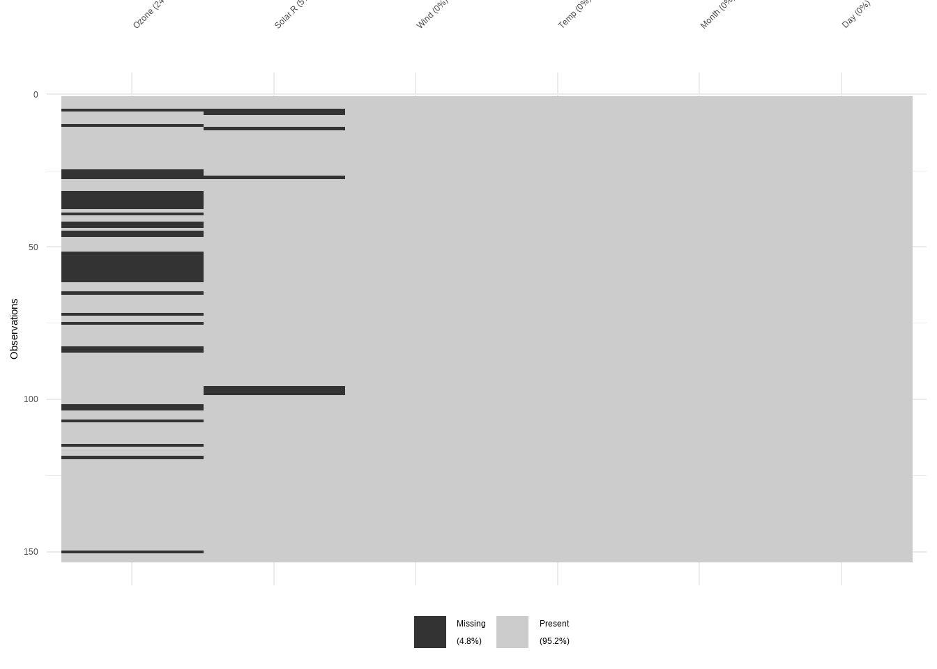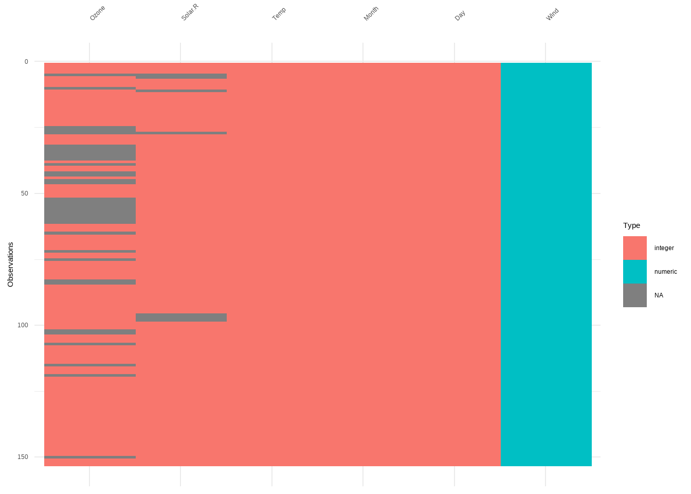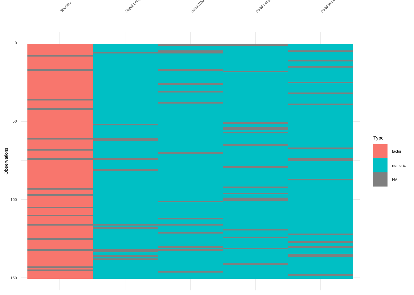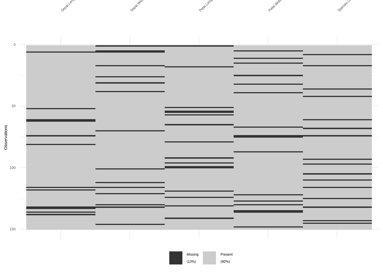 tidyr::replace_na: Missing values turns into a value (NA –>-99)naniar::replace_with_na: Value becomes a missing value (-99 –>NA)